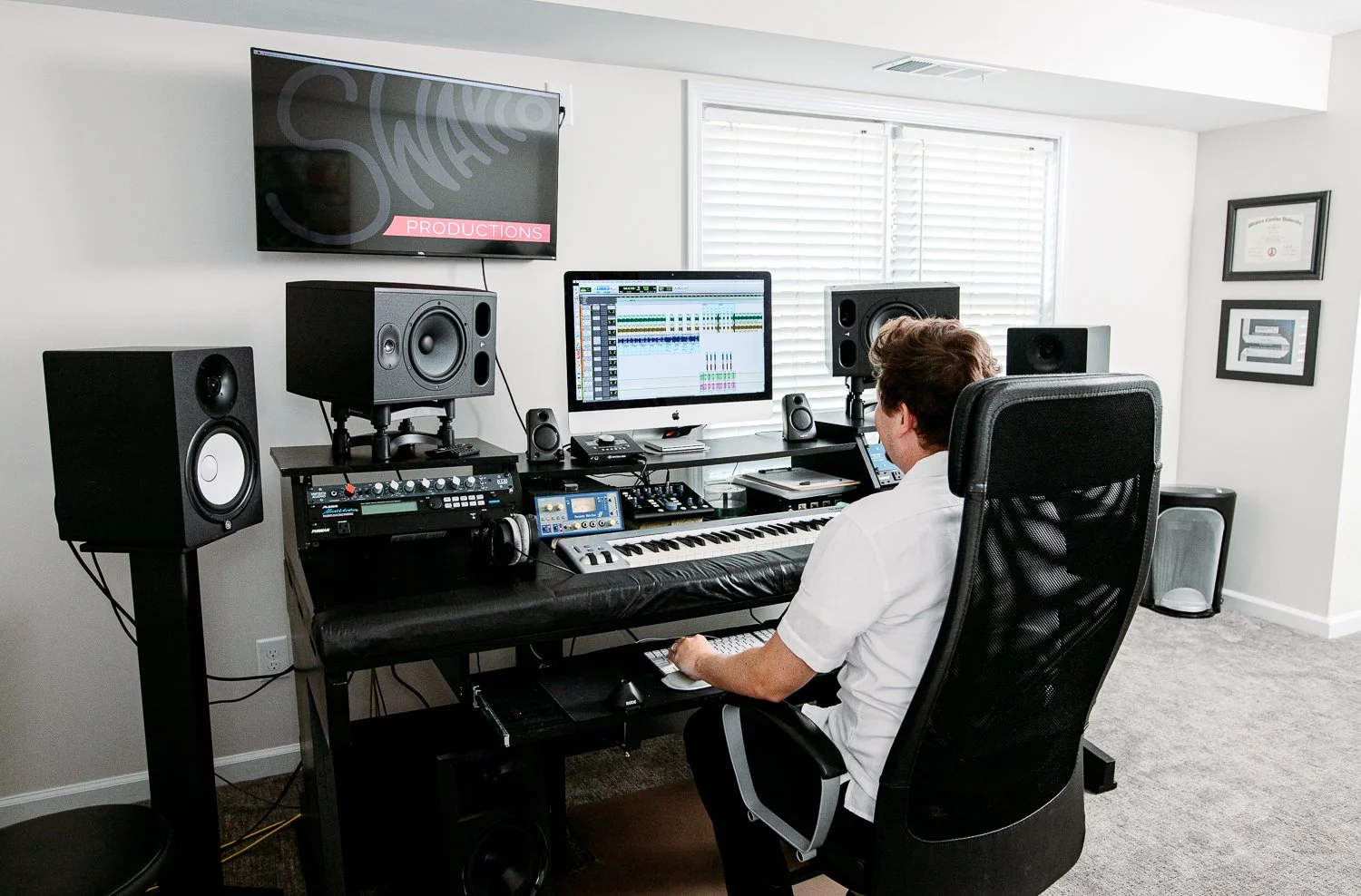 Here at Swayco Productions, our in-home recording studio offers professional-grade sound and production in a warm, private setting. Outfitted with industry-standard equipment and acoustically tuned for clarity, we deliver high-quality results in a comfortable and relaxing environment.
